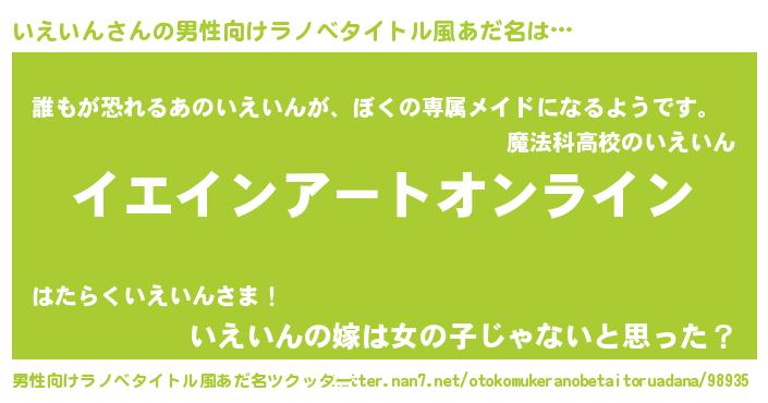| 胡散臭い通販商品みたいなあだ名 | 『億万長者になれる水晶球…その名も「いえいん」』 |
