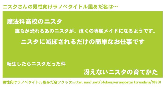 | ヘコむあだ名 | 『ニスタ(笑)』『つくし』『ニス太郎』 |