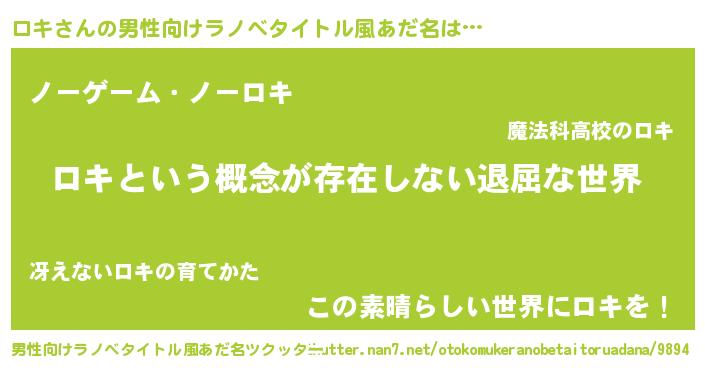 | 女子向けラノベタイトル風あだ名 | 『異世界で失敗しない100のロキ』 |