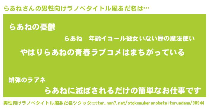| 女子向けラノベタイトル風あだ名 | 『らあねの雑貨屋さん』 |