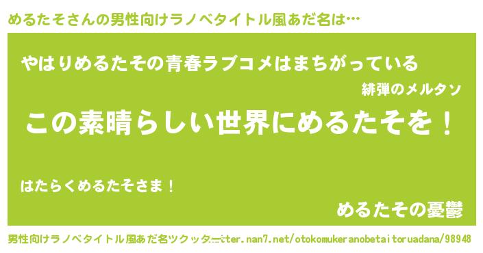 | 意味不明あだ名 | 『住所不定無職めるたそ(50歳)』 |