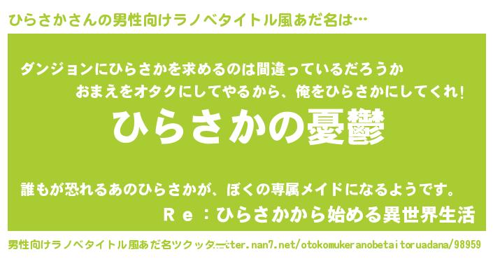 | 女子向けラノベタイトル風あだ名 | 『ひらさか姫と円卓の騎士』 |