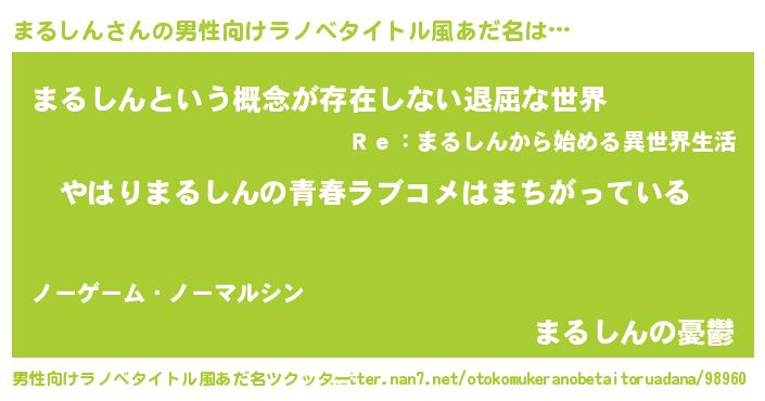 | 女子向けラノベタイトル風あだ名 | 『まるしんの雑貨屋さん』 |