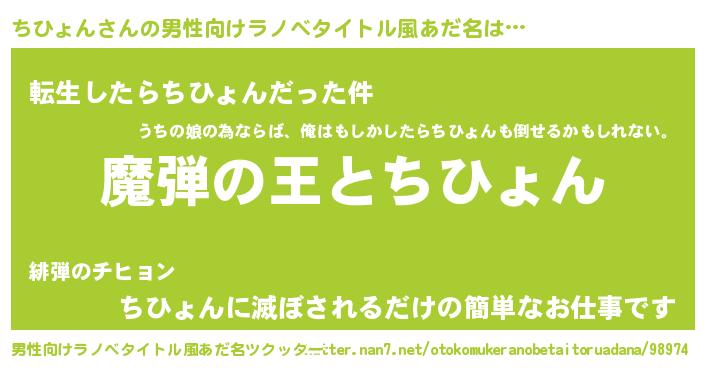 | 意味不明あだ名 | 『住所不定無職ちひょん(77歳)』 |