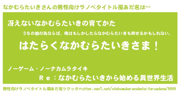 | 意味不明あだ名 | 『自称なかむらたいき』 |
