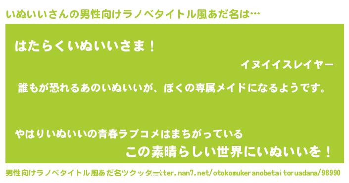 | ヒーロー風カッコイイあだ名 | 『ネオイヌイイ』『仮面イヌダー』 |