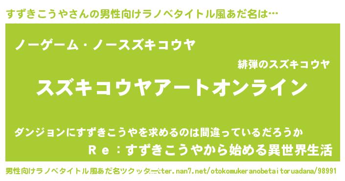 | 女子向けラノベタイトル風あだ名 | 『誰かこのすずきこうやを説明してください! ~契約から始まるウェディング~』 |