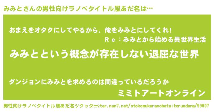 | ヒーロー風カッコイイあだ名 | 『ネオミミト』『正義の使者みみと』 |