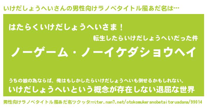 いけだしょうへいさんの男性向けラノベタイトル風あだ名をツクッター!