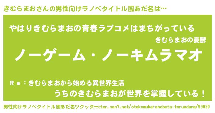 | 女子向けラノベタイトル風あだ名 | 『死神きむらまおの再婚』 |