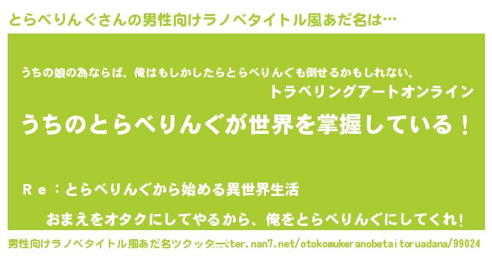 | 女子向けラノベタイトル風あだ名 | 『男装とらべりんぐの憂鬱な任務』 |