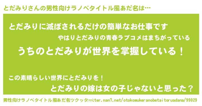 | ヒーロー風カッコイイあだ名 | 『天弓騎士トダ』『ウルトラとだみりマン』 |