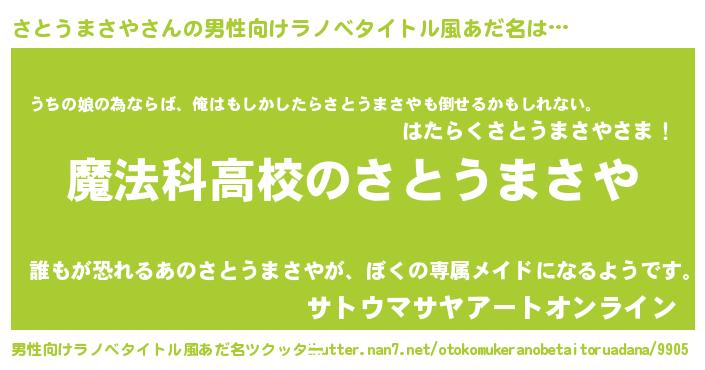 | 肩書あだ名 | 『さとうまさや閣下』『さとうまさやCEO』 |