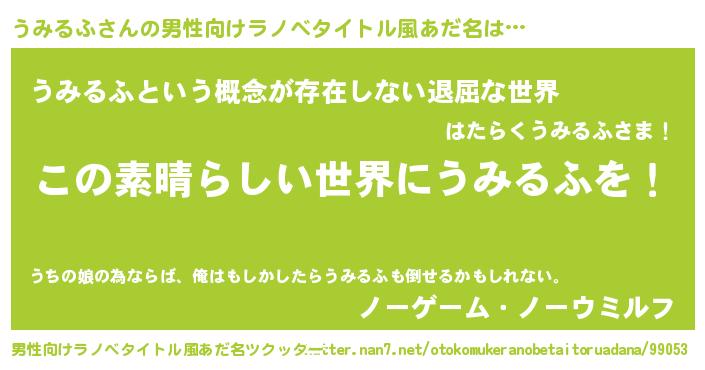うみるふさんの男性向けラノベタイトル風あだ名をツクッター!