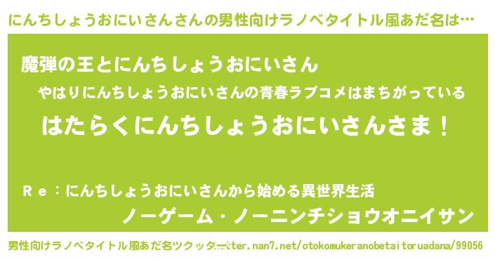 | 意味不明あだ名 | 『住所不定無職にんちしょうおにいさん(5歳)』 |