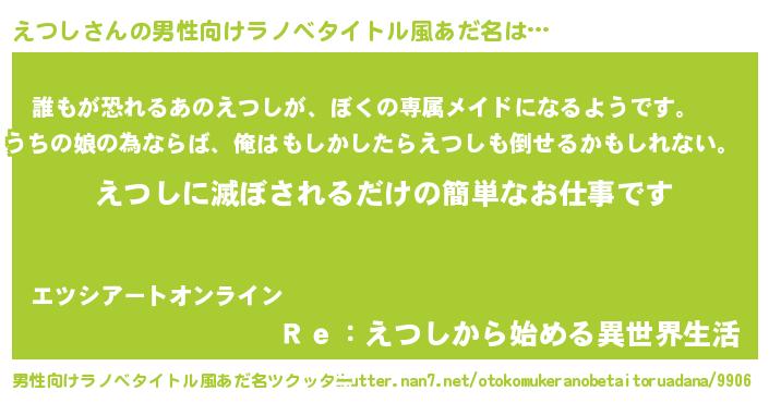 | 胡散臭い通販商品みたいなあだ名 | 『来世でも幸せになれる水素水…その名も「えつし」』 |