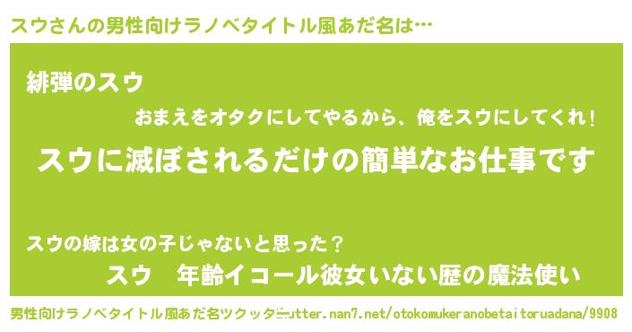 | ヒーロー風カッコイイあだ名 | 『天空の使者スウ』『炎刃騎士スウ』 |