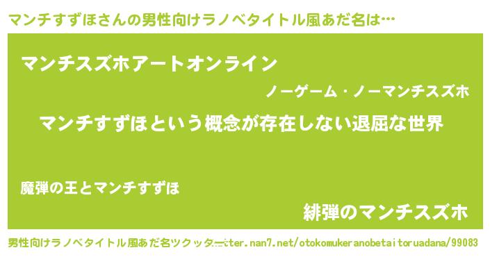 | 女子向けラノベタイトル風あだ名 | 『異世界で失敗しない100のマンチすずほ』 |