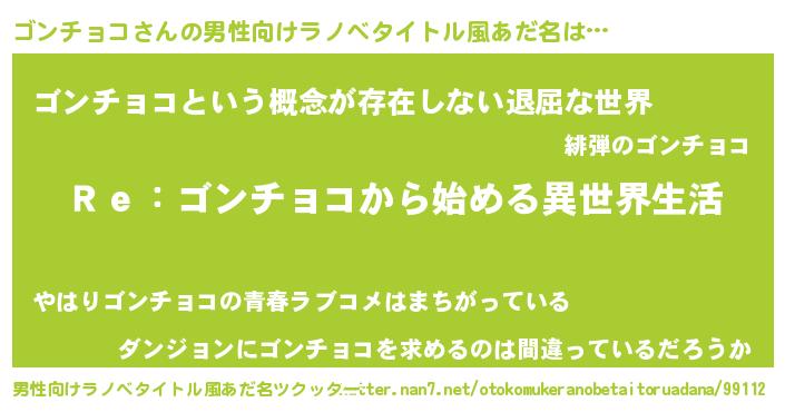 | 女子向けラノベタイトル風あだ名 | 『闇のゴンチョコ』 |