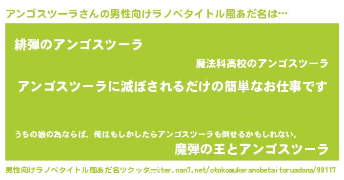 | 胡散臭い通販商品みたいなあだ名 | 『あなたにだけ特別に提供する世界で10本だけ現存している希少なブランデー…その名も「アンゴスツーラ」』 |