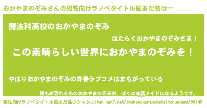 | 意味不明あだ名 | 『住所不定無職おかやまのぞみ(53歳)』 |