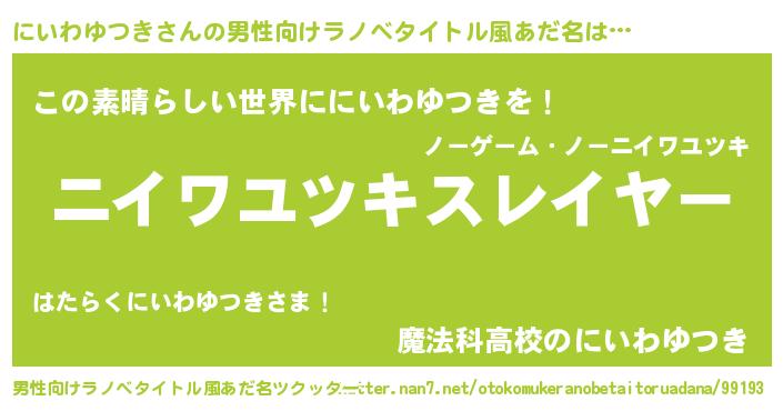 | ヒーロー風カッコイイあだ名 | 『仮面ニイダー』『究極戦士ニイワユツキ』 |