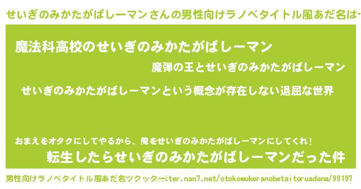 | 意味不明あだ名 | 『永久保存せいぎのみかたがばしーマン』 |