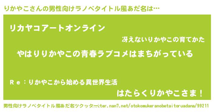 | 女子向けラノベタイトル風あだ名 | 『りかやこの雑貨屋さん』『闇のりかやこ』 |