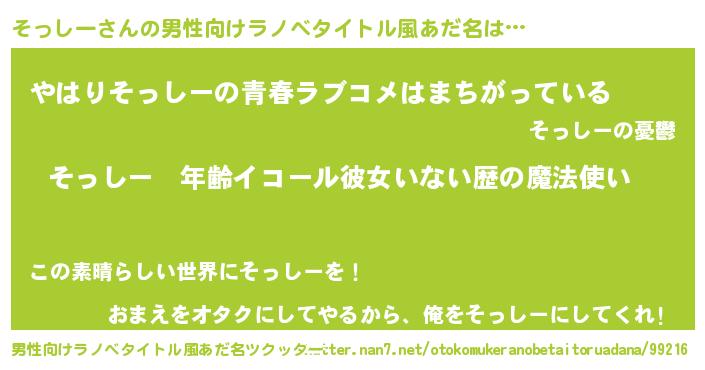 | ヒーロー風カッコイイあだ名 | 『ウルトラそっしーマン』『仮面ソッダー』 |