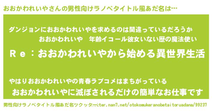 | 意味不明あだ名 | 『自称おおかわれいや』 |