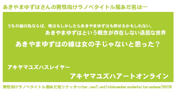 | 意味不明あだ名 | 『とにかく怪しいあきやまゆずは』 |