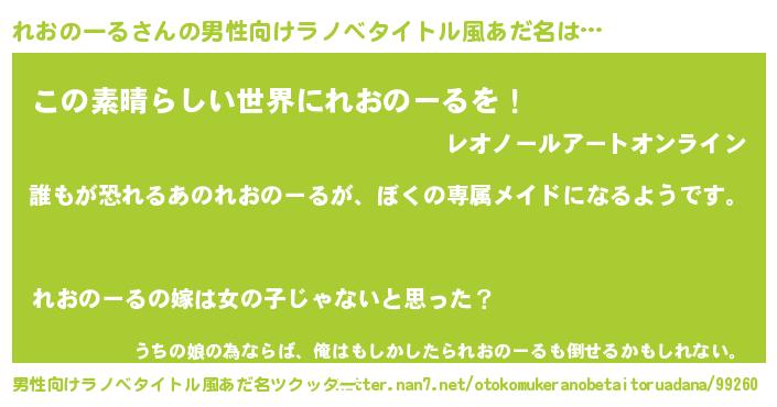 | 意味不明あだ名 | 『永久保存れおのーる』 |
