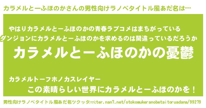| 胡散臭い通販商品みたいなあだ名 | 『必ず成功するブレスレット…その名も「カラメルとーふほのか」』 |