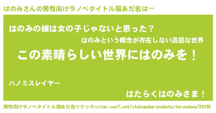 | ヘコむあだ名 | 『はのっぺ』『はのみ(苦笑)』『豆乳』 |