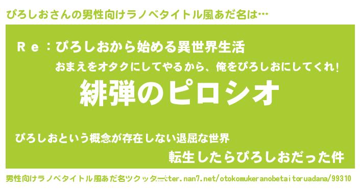 | ヘコむあだ名 | 『ぴろしお(小並感)』『ぴろ太郎』 |