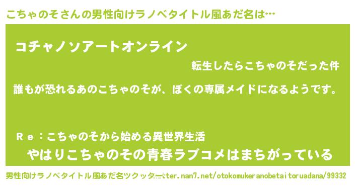 | ヘコむあだ名 | 『こちゃのそ(小並感)』『こちにー』 |