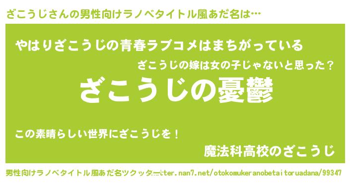 | 胡散臭い通販商品みたいなあだ名 | 『モテモテ間違いなし霊験あらたかなお札…その名も「ざこうじ」』 |