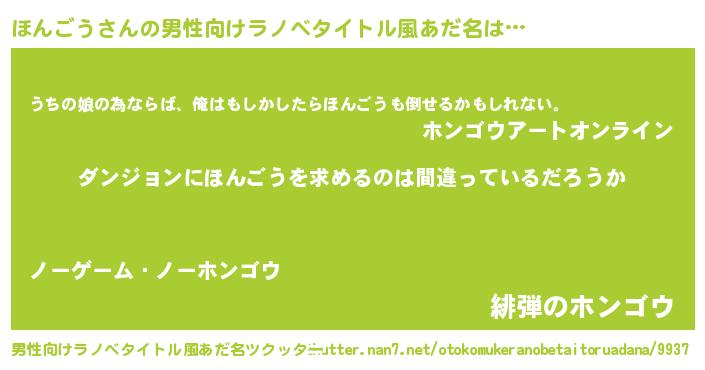 | ポケモン風あだ名 | 『ヒホンゴウ』『ホンゴダネ』 |