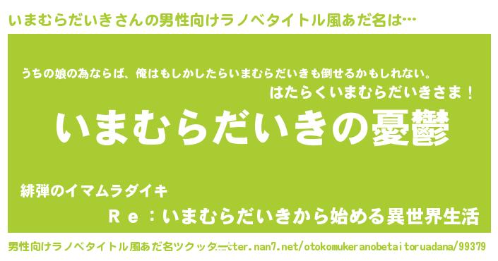 | 胡散臭い通販商品みたいなあだ名 | 『モテモテ間違いなし水晶球…その名も「いまむらだいき」』 |