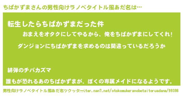 | 女子向けラノベタイトル風あだ名 | 『ちばかずまの卵を拾いまして』 |