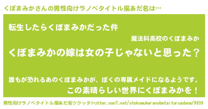 | 意味不明あだ名 | 『とにかく怪しいくぼまみか』 |