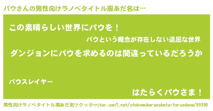 | 女子向けラノベタイトル風あだ名 | 『パウの卵を拾いまして』 |