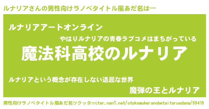 ルナリアさんの男性向けラノベタイトル風あだ名をツクッター!