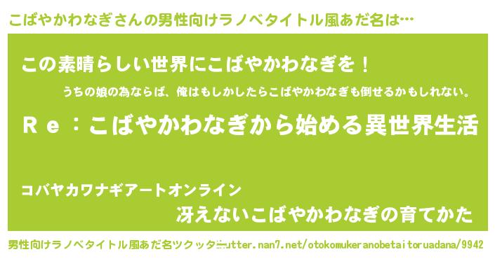 | 女子向けラノベタイトル風あだ名 | 『こばやかわなぎストレイドッグス』 |