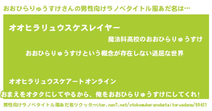 | ヒーロー風カッコイイあだ名 | 『ネオオオヒラリュウスケ』 |