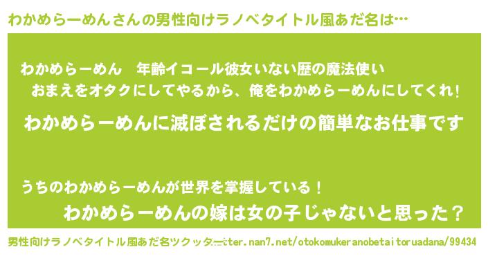 | 胡散臭い通販商品みたいなあだ名 | 『伝統あるサプリメント…その名も「わかめらーめん」』 |