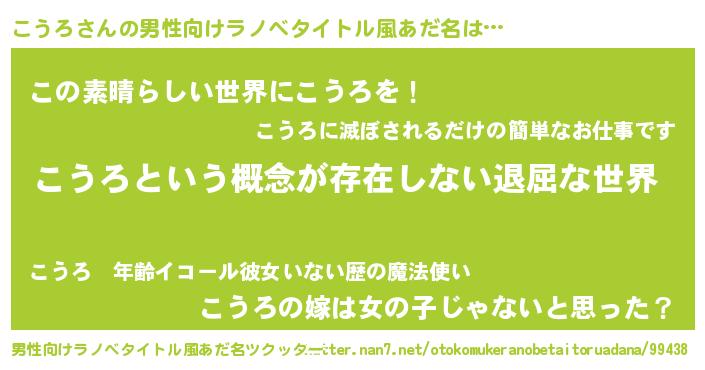 | 胡散臭い通販商品みたいなあだ名 | 『絶対に幸福をもたらす健康食品…その名も「こうろ」』 |