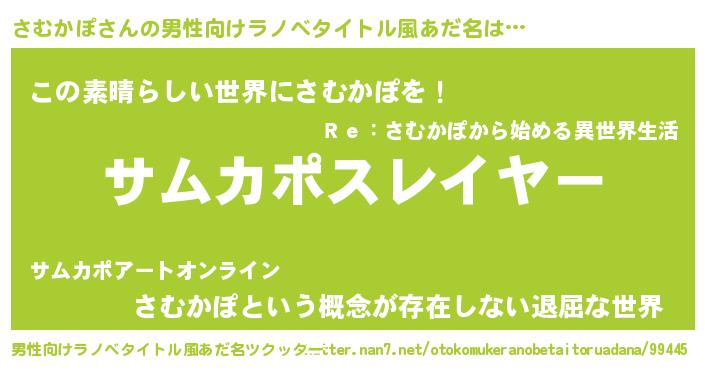 | ヘコむあだ名 | 『さむかぽ(笑)』『さむにゅー』 |