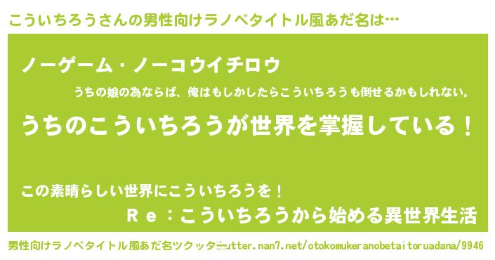 | 伝説のあだ名 | 『救世主となる占い師こういちろう』 |