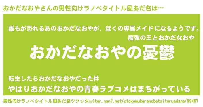 | 胡散臭い通販商品みたいなあだ名 | 『モテモテ間違いなし霊験あらたかなお札…その名も「おかだなおや」』 |